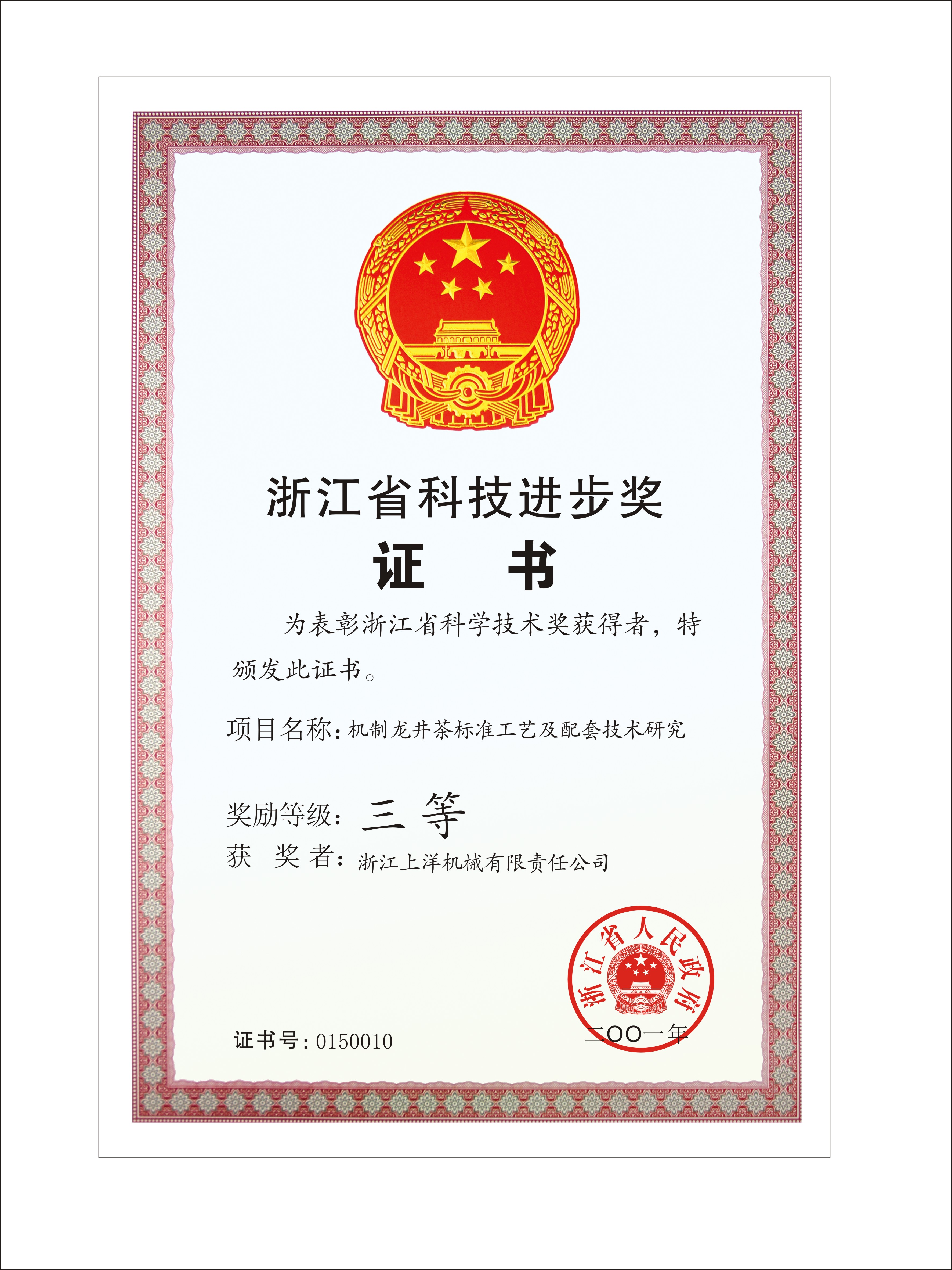 2001浙江省科技進(jìn)步三等獎(jiǎng)