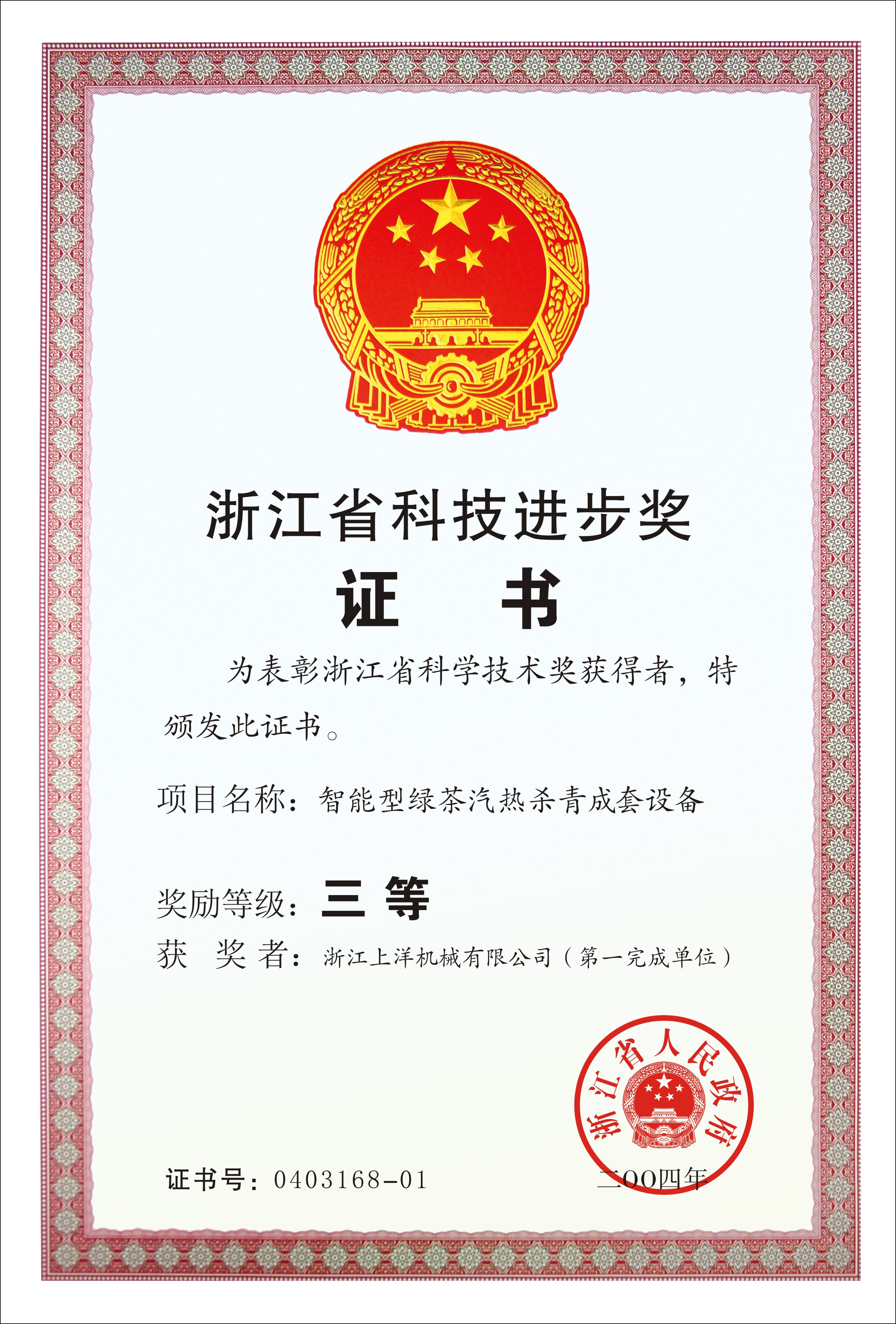 2004年浙江省科技進(jìn)步三等獎(jiǎng)