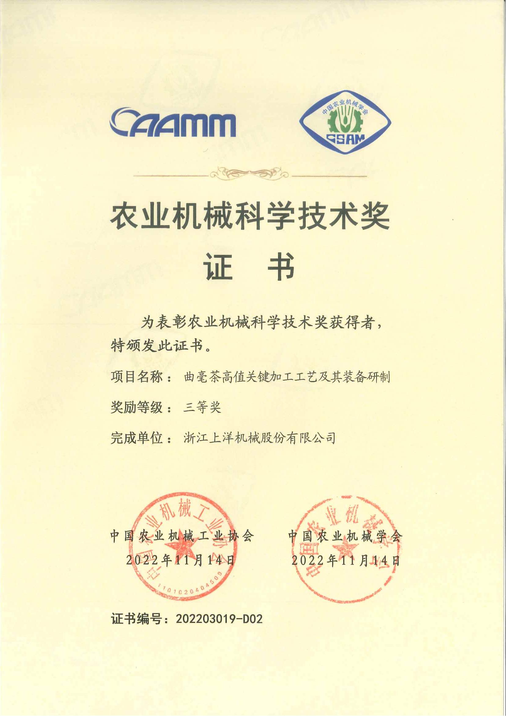 2023年農(nóng)業(yè)機(jī)械科技技術(shù)三等獎(jiǎng)