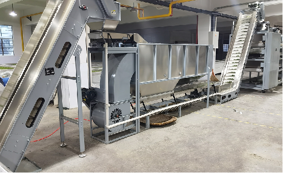 機組組成:本機組由進料輸送機、勻葉振動槽、風選機、出料輸送機、機組集成控制系統(tǒng)組成。